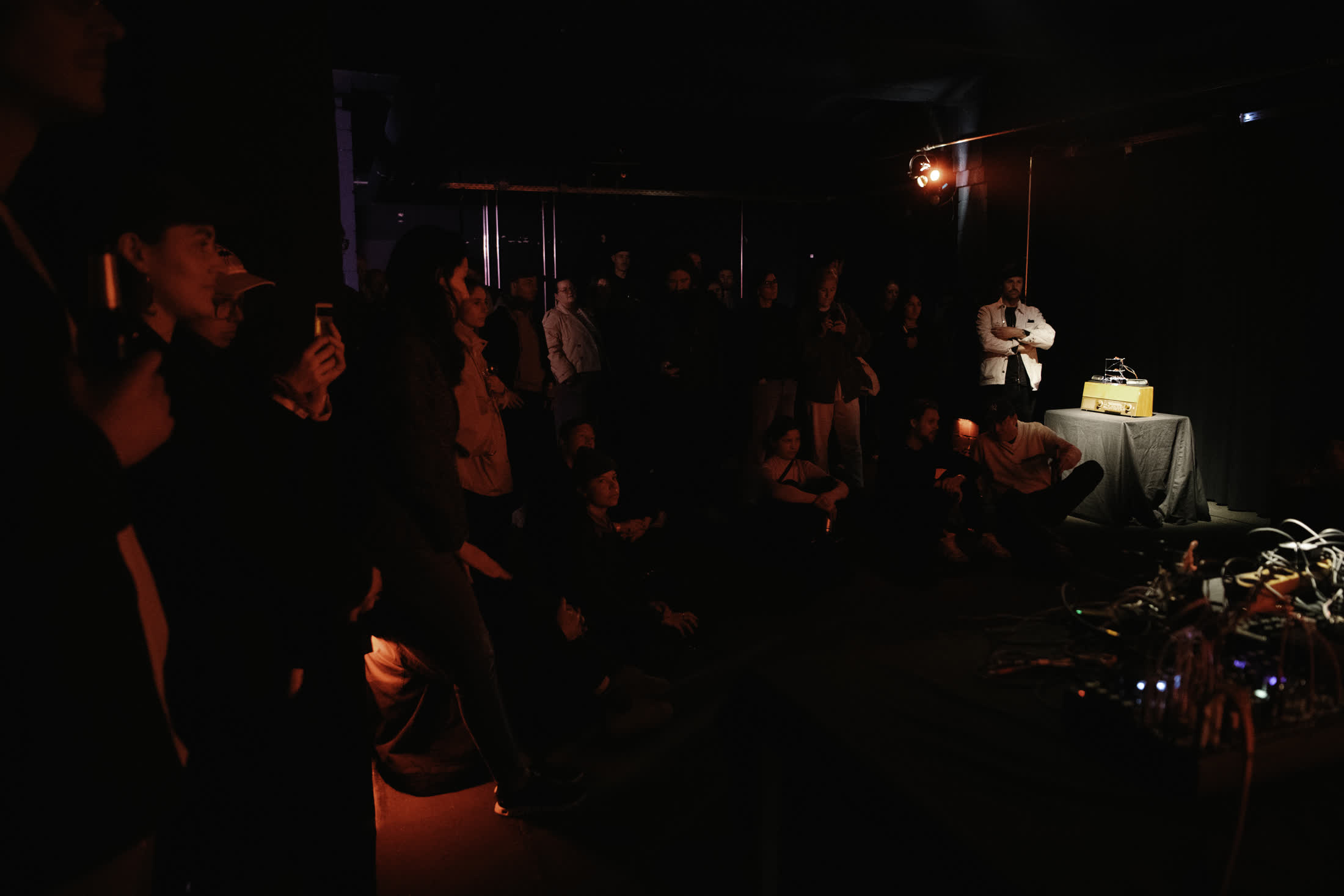 We decided to build a sonic sculpture that would process and sonify the electromagnetic interferences in the room.