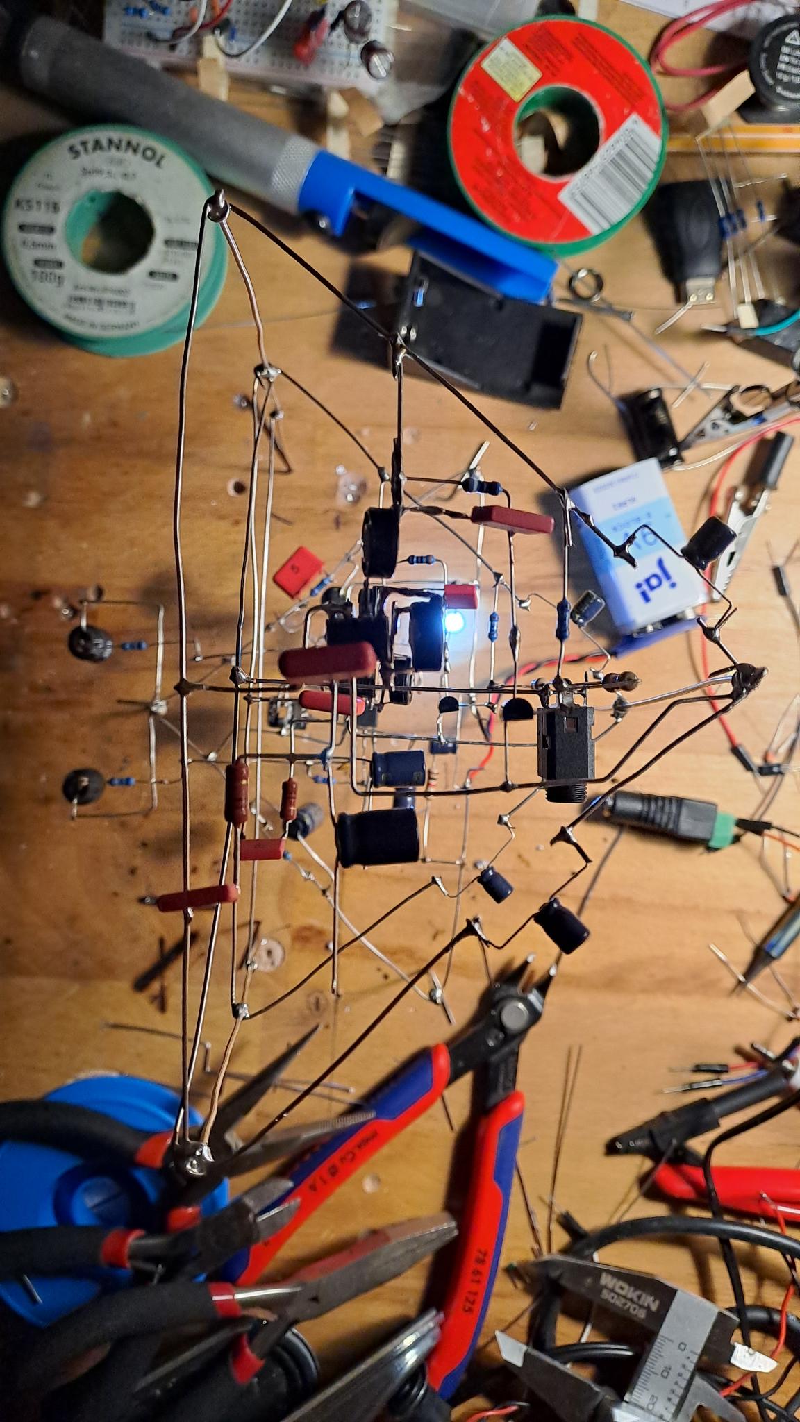 I had already been digging myself into the rabbit hole of point-to-point-soldering, strongly inspired by the works of Peter Vogel and Iona Vreme Moser.